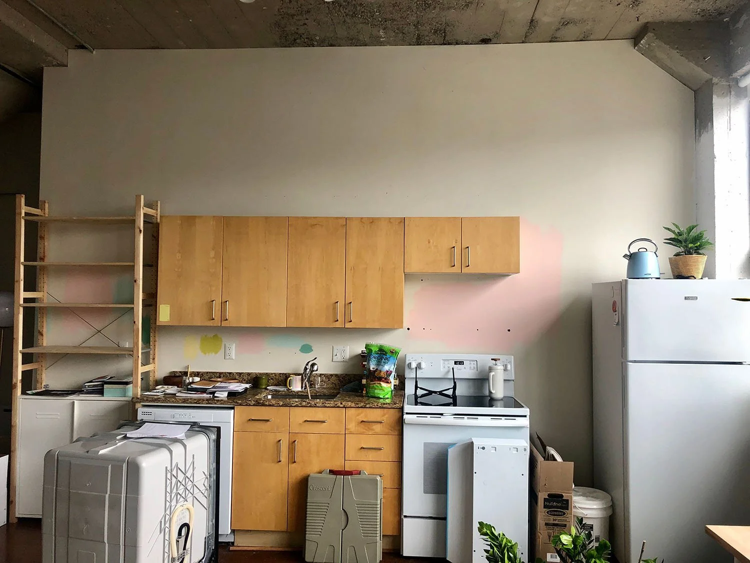 What began as leftover paint from a mural project turned into a mini kitchen renovation. That’s a completely normal thing to do with extra paint, right?