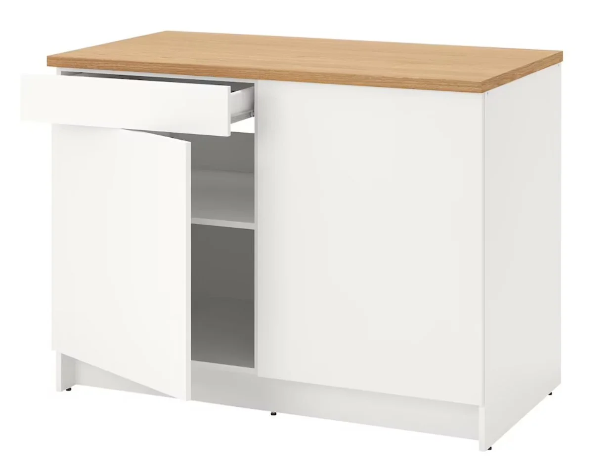 If you look VERY closely, the KNOXHULT countertop is slightly less thick and the top drawer is shorter. This might bother some, but after doing the math and seeing how much money I could save with this hack (about $1,000), my thriftiness won out. My grandma would be proud.