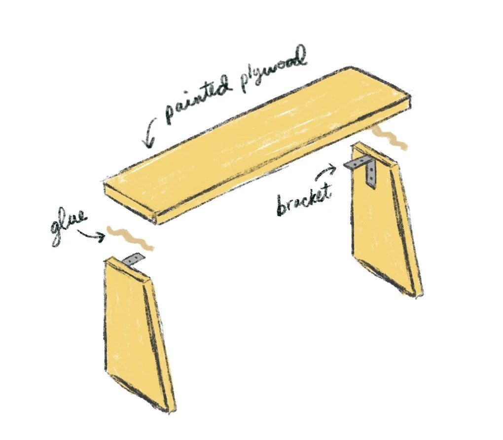 I leaned on my design brain to figure out how to make it instead of looking up a tutorial (yay for having a curious mind and busy hands). The shelf is basically just a wooden rectangle sitting on top of two trapezoids and secured with a little wood glue + an inside bracket where the pieces meet.