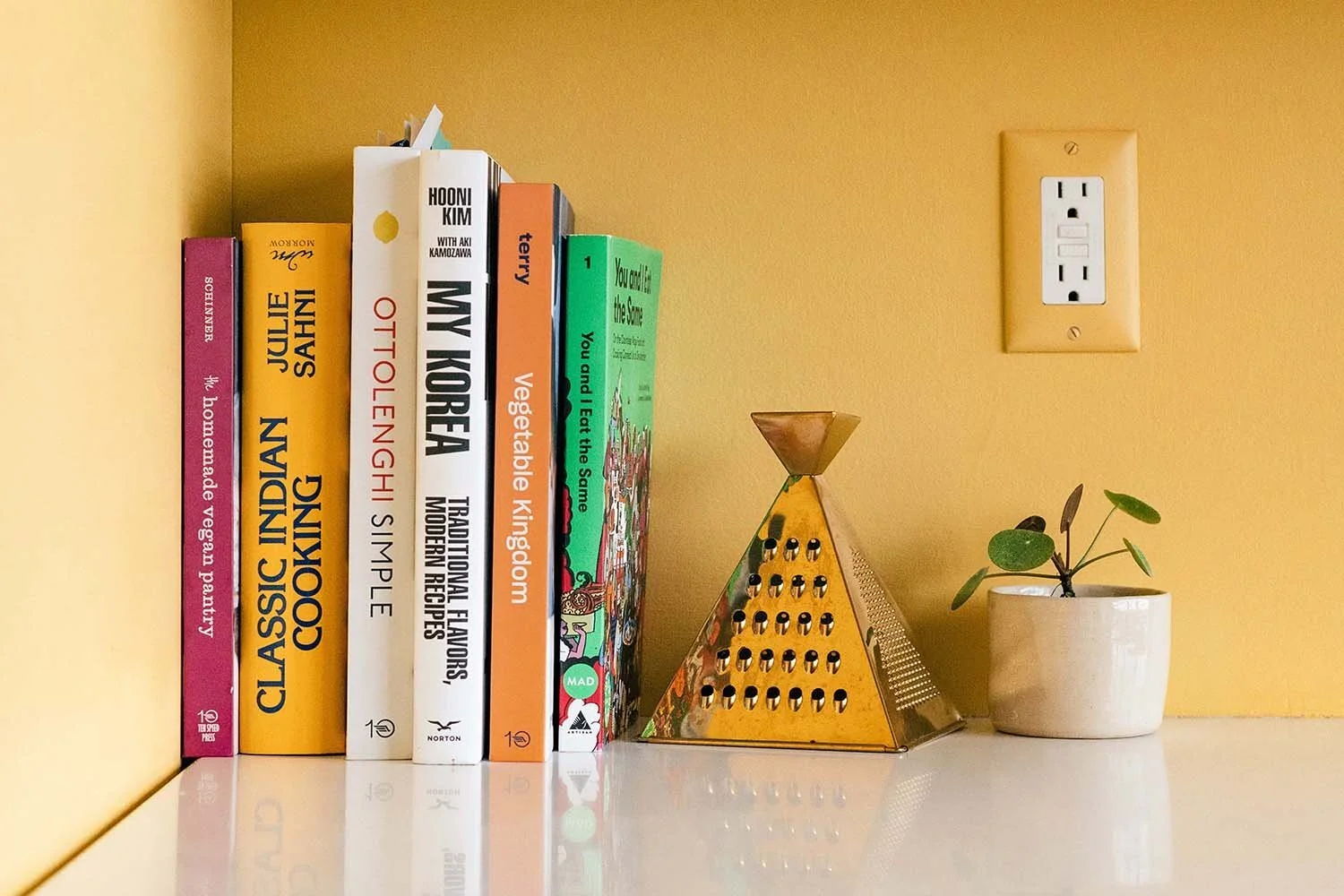 Just when I thought the kitchen was complete with the added storage and fresh coats of paint, I noticed the area above the stove felt less considered than the rest of the space. The top of my stove display is slightly rounded, so I thought this shelf would 1) give me a flat surface to put small items and 2) make the stove feel more built-in.