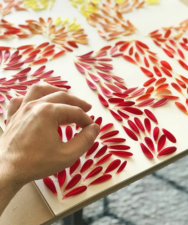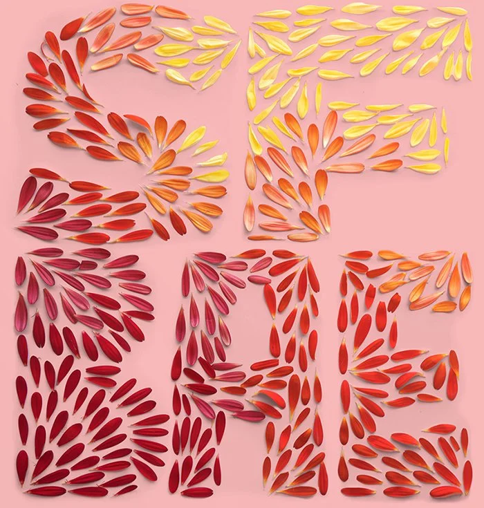 Express it in the letterforms, the medium, the colors—since I often like to work with tactile media, I chose flower petals arranged in a bright gradient to reflect the colors in SF’s architecture and the amazing sunsets that we get, at least when it isn’t foggy.
