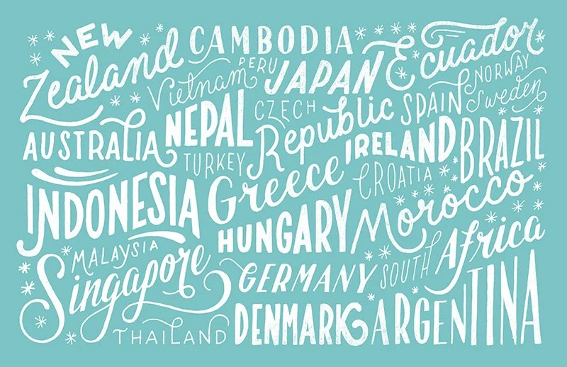 In 2016, I packed up my life in New York and went on an adventure around the world for a year and a half, doing freelance work and visiting over 20 countries! Before I left for my trip, I lettered a list of all the places I wanted to try and see, and I managed to make it to most of them (Singapore, Morocco, and Croatia - I'm still coming for ya).
