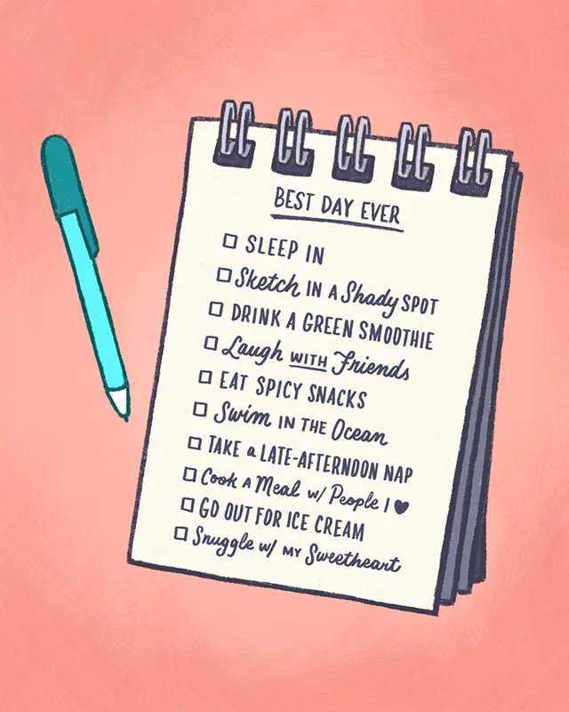 One thing that never fails to make me happy is sitting down with my sketchbook and drawing for fun. Not for client work or for a project...just for me. I know this about myself...and yet sometimes I’ll get to the end of the week and be so stressed and realized I didn’t make any time for this simple thing that I know brings me joy (which is on me because I definitely had the time to watch Handmaid's Tale or scroll Instagram for a few hours).