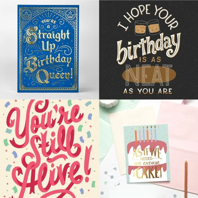 What's going to make your piece stand out to a buyer? Unique neon colors? Super funny copywriting? An unusual lettering style? Make something you'd want to pick up on a shelf next to a bunch of other birthday-themed items!