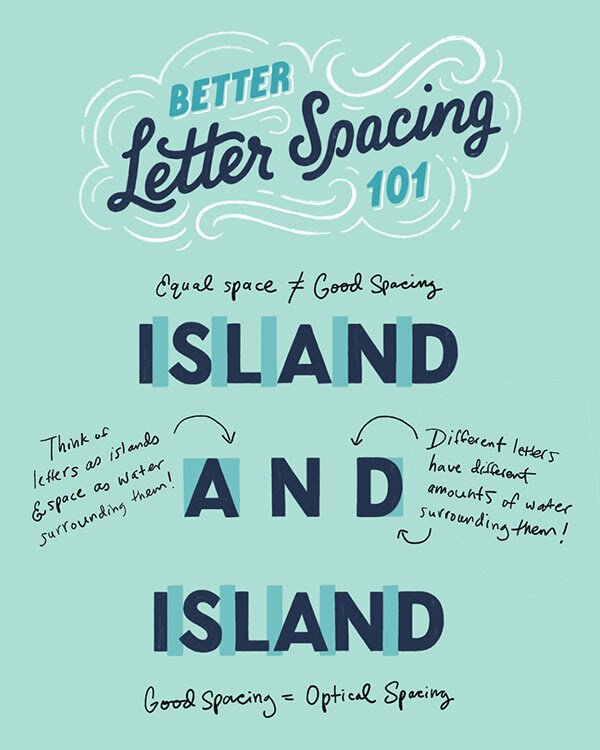 It wasn’t until I randomly came across a small diagram in the Speedball Text Book that letter spacing became clear to me. This ‘A HA’ moment helped me become confident with my letter spacing and eventually led me to translate it through my own lens and teach it to other lettering artists in my workshops.