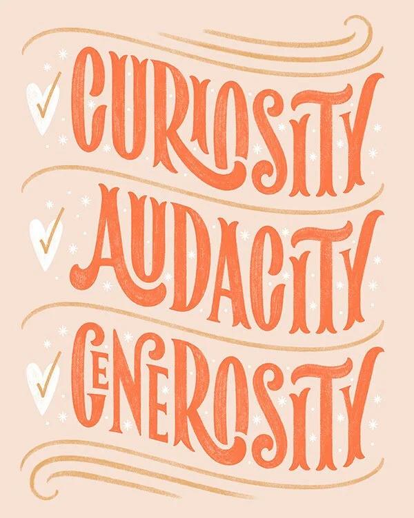 Caption ideas: Explain your list, especially items that might not be completely obvious. For example, I have been trying to break out of “safe” mindsets in terms of my business practices so I’m making sure I have audacity “with me” every day when I sit down to work!