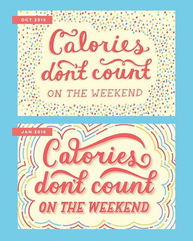 As imperfect as my lettering was, I posted it. And then I lettered some more imperfect pieces and posted them too. This was the start of Daily Dishonesty, my collection of lettered white lies that ended up going viral, landing me a book deal, and kick starting my lettering career into what it is today.