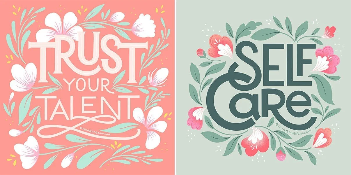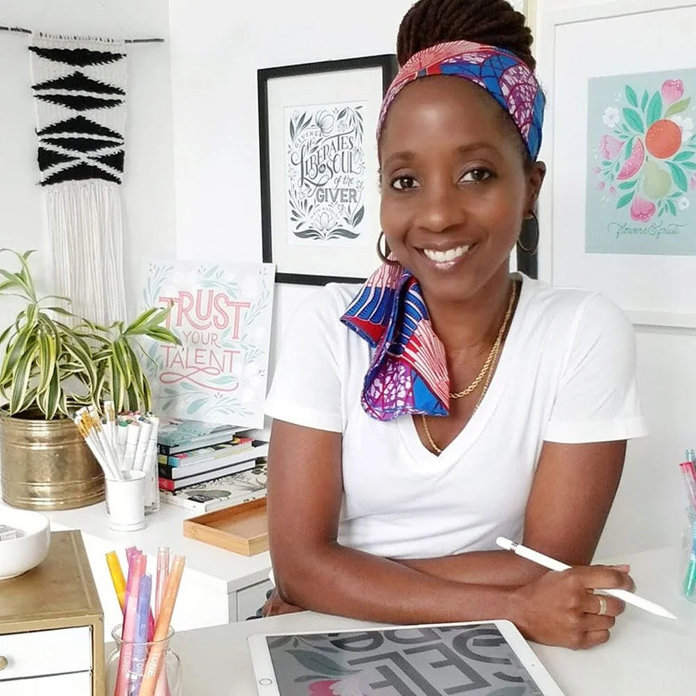 Gia Graham is a lettering artist, illustrator and Skillshare Top Teacher based in Atlanta, originally from sunny Barbados. Gia credits her island background for influencing the vibrant colors and lush florals and foliage she often incorporates into her work. Over her 20 year creative career, she has worked in corporate graphic design, run her own stationery business and now focuses on licensing her art to product-based companies.