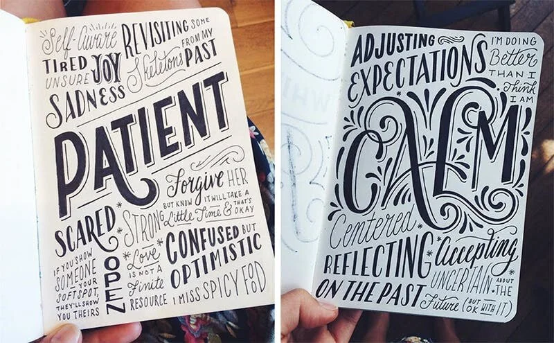 During my travels in 2016, I made it a point to draw in my sketchbook more often and started lettering my feelings from each week. I titled this mini-series "Weekly Feels" and posted them on Instagram.
