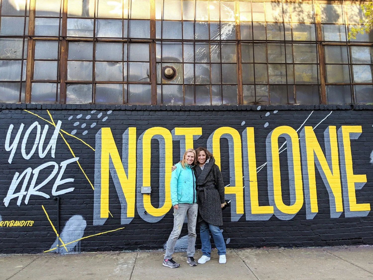 You Are Not Alone Murals is a nonprofit project conceived of by Annica Lydenberg, and her longtime friend Samantha Schutz, author of I Don’t Want to Be Crazy, a critically acclaimed memoir about living with anxiety disorder. The project started in 2019 with three murals in Brooklyn by Dirty Bandits, Adam Fu, and Jason Naylor.