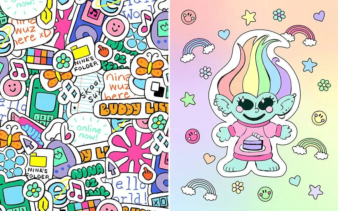 Nina is a designer, illustrator, and motion artist based in NJ. She draws funky letters, makes silly gifs, and loves making stupid things that make people smile. Her work is colorful, humorous, and takes a lot of inspiration from the 2000s and the nostalgia that comes from it. A few of her clients include Adult Swim, GIPHY, Spoon Radio, and Penguin Random House.