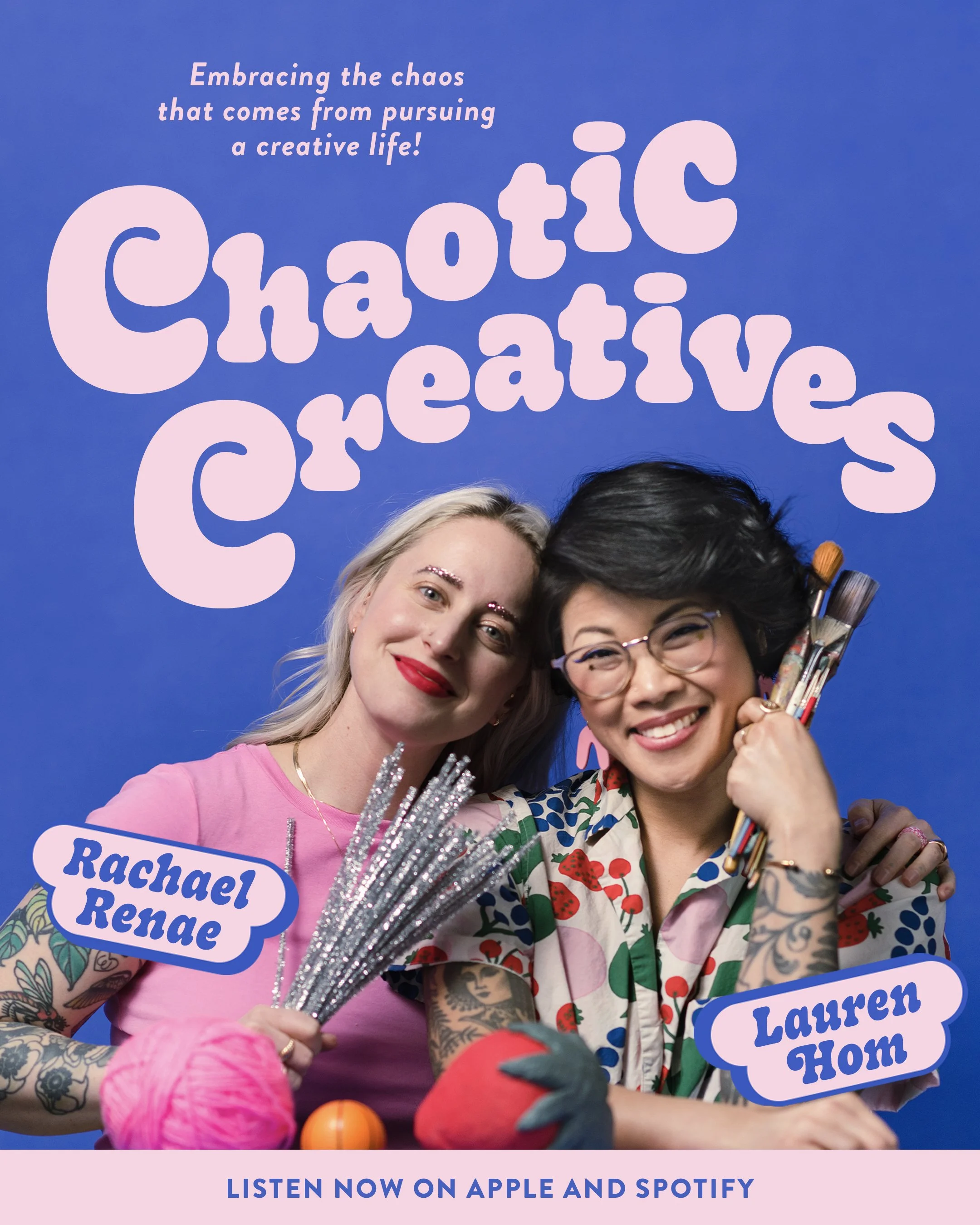 Together, we host Chaotic Creatives, a podcast where we chat about the chaos of making things you love while also trying to make a living. Listen on Apple Podcasts, Spotify, or YouTube !