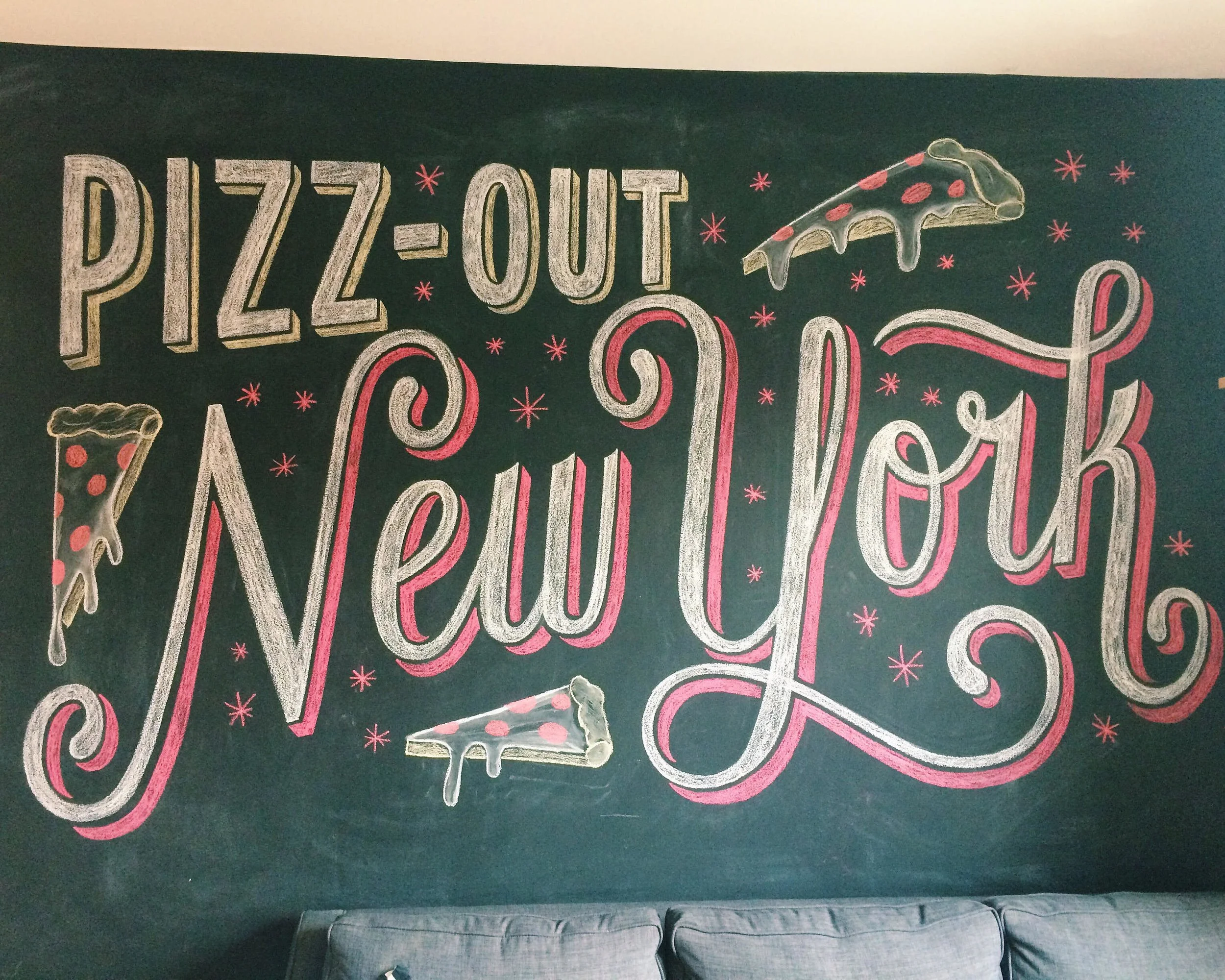 Chalkboard mural created for 'wichcraft, a gourmet sandwich company in New York City. Created over two days, the mural illustrates 'wichcraft's motto and highlights the fresh ingredients they use every day.